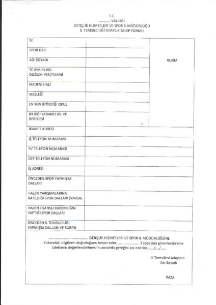 Türkiye Karate Federasyonu İl Temsilciliği Talep Formu